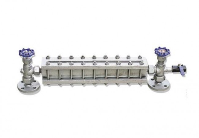 儀表上下閥都裝有PN1.6MPa,DN20的法蘭。通過(guò)焊接在容器上的法蘭,與容器組成連通器,透過(guò)玻璃管就可直接顯示容器內(nèi)介質(zhì)液位的高度。
