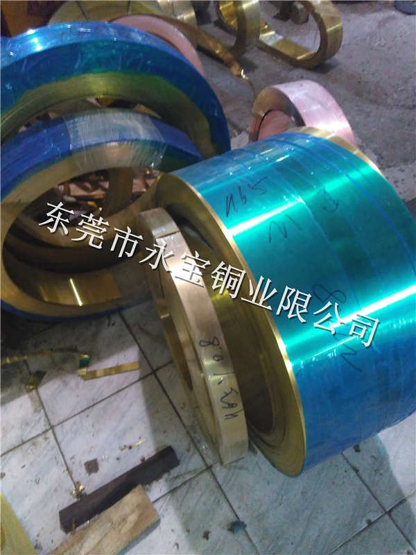 生產各種規格牌號的銅材:磷銅板帶C5191、QSn6.5-0.1、QSn8-0.3、C5212、C5210黃銅板帶H62、h65、h68、H70、H85、C2680、C2600、C2620、C2200、C2720等。框架材料KFC、C194、C1921,純紫銅T2、TU1、C1020、C1100、C1201、C1220,鋅白銅C7521、C7701、BZn18-18、BZn15-20,鈹銅QBe2.0、C17200、C17500等GB狀態有O、1/2H、1/4H、3/4H、H、EH、SH,高精密黃銅、紫銅、板、帶、線、箔。寬度約在305mm-610mm,厚度0.02mm-2.5mm。