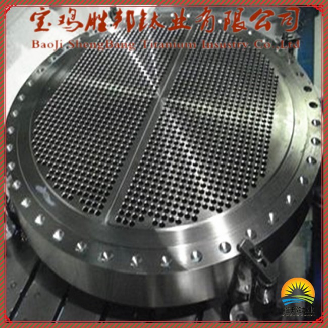 鈦管板,就是在圓形鈦鋼復合板上鉆出比管子外徑一樣略大一些的孔,將管子穿入焊住固定,起這樣作用的一種配件。