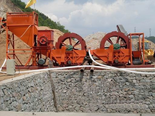 制砂生產線的流程大致為:(料倉) ---- 給料機 ---- 顎式破碎機 ---- 反擊式破碎機 ---- 振動篩 ---- 洗砂機----(可成成品)。其中間的機器之間可用輸送機相接。