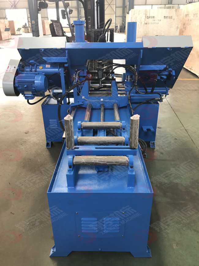1、機床通過機械、電氣、液壓的配合,具有自動夾緊、自動進刀、切割完畢鋸架自動快速上升(即退刀)的功能。