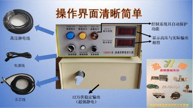 盈暉靜電發(fā)生器穩(wěn)定性好,輸出無級調(diào)節(jié),設(shè)備可長時間連續(xù)運行,適用于DISK圓盤型自動靜電水性、油性噴漆設(shè)備使用。(YH120KV干式和YH150KV油式兩款供貴公司選用)