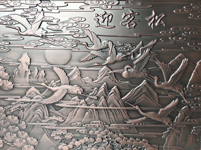 純銅純鋁雕刻屏風背景墻,銅浮雕壁畫以其特有的金屬性質,解決了木制品的缺點,能夠經受戶外的風吹雨淋而不變質,能夠有效的防火防潮防蟲蛀,好的耐候性,10年不變色。純銅雕刻屏風背景墻,銅鋁浮雕壁畫經過精雕細琢,既呈現出現代氣息,又不失古典韻味,融中西文化于一體,呈現出古典與現代的美感。