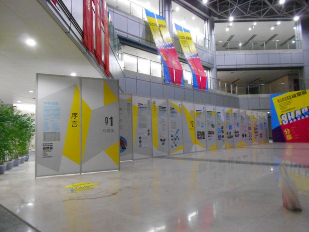 順德定制學校畫展展板,學校活動展示板DIY定制,雙面之字型八棱柱展架