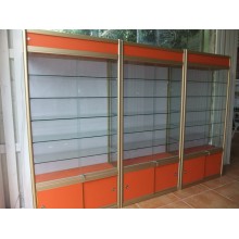 4、 4、建議搭配:正規展柜尺寸搭配,低柜40、50、60、70CM 高,一般是對開門,開門方便,也可以是移門。頂上燈箱20-25CM高,燈箱里的燈可裝,可不裝,根據客戶需求。柜臺上面的玻璃部分高30CM左右。