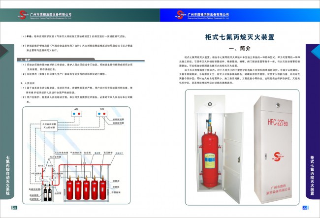 柜式七氟丙烷滅火裝置,相當于七氟丙烷滅火系統中單元獨立系統的一種特殊型式,即為無管網的一種單元獨立系統。它是將滅火劑儲存容器組件、噴射管路、噴嘴、閥門驅動裝置等集于一體,與火災自動報警控制器聯結,可實現自動探測并實施滅火的柜式滅火裝置。