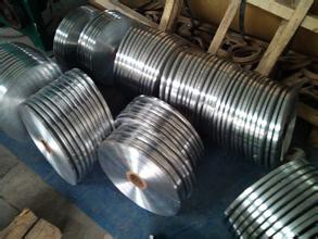 ?鋁帶的原料是純鋁或鋁合金鑄軋鋁卷、熱軋鋁卷,經冷軋機軋制為不同厚度、寬度的薄板鋁卷,再根據用途,經縱剪機縱向分切為不同寬度的鋁帶。
