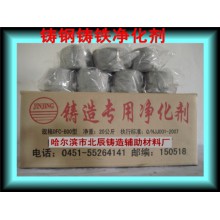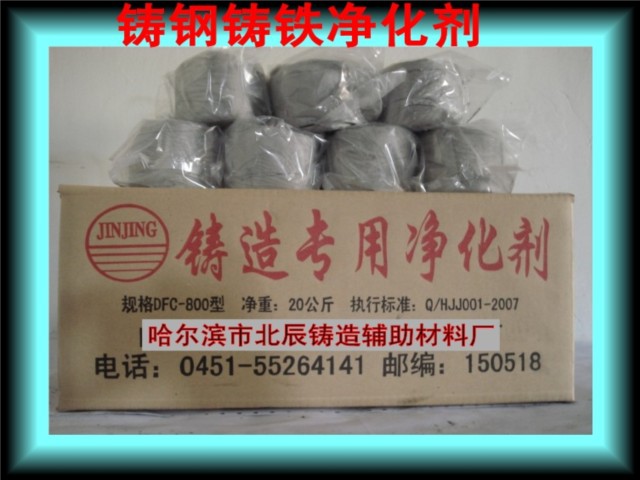 、  此產品是專供冶煉工業用的專利產品,鑄造工業是各個國家發展機械、國防、航空等的基礎。目前我們國家鑄造冶煉的產品,在凈化鋼、鐵水方面所使用的材料,只能除去鋼、鐵水表面的浮渣,而鋼、鐵水里面的雜質,如氧化物、硫化物夾渣等有害氣體所包浮的雜質無法去除。這就影響了產品的質量。也造成了鑄件氣孔、夾渣,影響了鑄件的質量。為此我廠以哈工大為依托自行研發了新一代DFC—800型凈化劑。(鑄鋼、鑄鐵)。