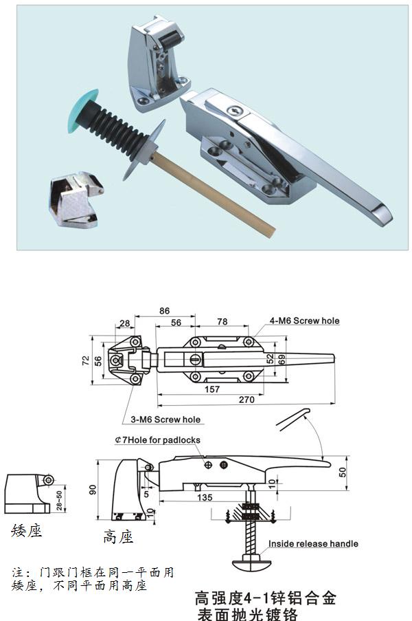 友航供應鋅合金鍍鉻內外開逃生冷庫門鎖