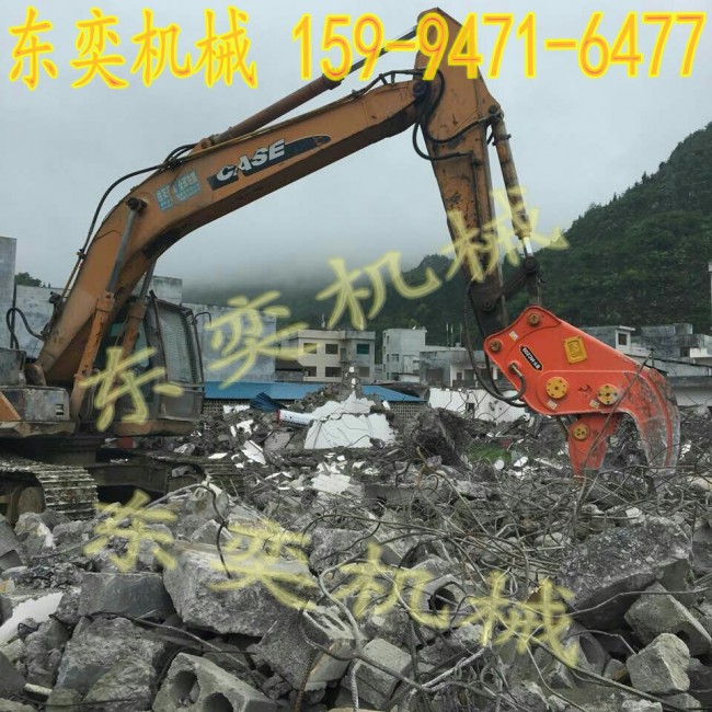 力道強(qiáng)勁=超高效率1、工作效率是破碎錘的二至三倍。 2、粉碎鉗可以出色的完成一系列作業(yè):即將鋼筋從混凝土塊中分離出來(lái),折彎并裝載到卡車上,從而明顯的提高了工作效率。 3、作業(yè)完全機(jī)械化,安全又省時(shí)。 大開大闔=提高效率1、咬合密實(shí)間隙小,操作靈活。 2、大開口設(shè)計(jì),工作輕松、方便。 3、裝有鋼筋切斷器,粉碎鉗可以同時(shí)進(jìn)行兩項(xiàng)作業(yè),粉碎混凝土并切斷暴露的鋼筋,使破碎作業(yè)效率更高。 堅(jiān)固耐用=節(jié)約成本1、采用瑞典高硬度輕質(zhì)鋼材,堅(jiān)實(shí)無(wú)比! 2、充分了解中國(guó)市場(chǎng)使用習(xí)性,針對(duì)磨耗部件及結(jié)構(gòu)件重點(diǎn)強(qiáng)化,壽命加倍! 3、顎齒制成了特殊形狀用以牢固的固定混凝土塊,楔入并粉碎,以便進(jìn)行快速軋碎。顎齒非常堅(jiān)固,具有高耐磨性。 輕便快捷=創(chuàng)造效益1、拆裝容易,油路設(shè)計(jì),不僅油缸速度加倍,并且可與破碎器通用,一機(jī)多任務(wù)。 2、低噪音無(wú)振動(dòng),滿足環(huán)保要求,適合城市與高新園區(qū)的拆除工程。 3、液壓油缸配有護(hù)蓋,用以阻攔混凝土塊和鋼筋的飛濺碎屑。