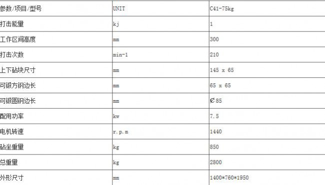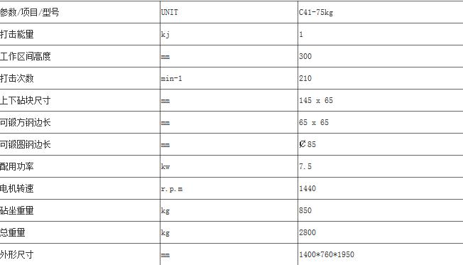 | 產(chǎn)品規(guī)格: | C41-75kg分體式空氣錘 | ||