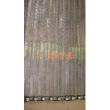 廣通網鏈生產的速凍食品輸送帶、水餃速凍馬蹄式輸送帶是由扁金屬片和圓金屬絲所組成,網帶自重輕、網孔空隙大、網面平整、運行平穩、不跑偏、不易變形、強硬度高、抗腐蝕性強、經久耐用,可運載重物,使用壽命長,主要應用于洗滌、干燥、食品的冷凍、脫水、熱處理的輸送線等方面。