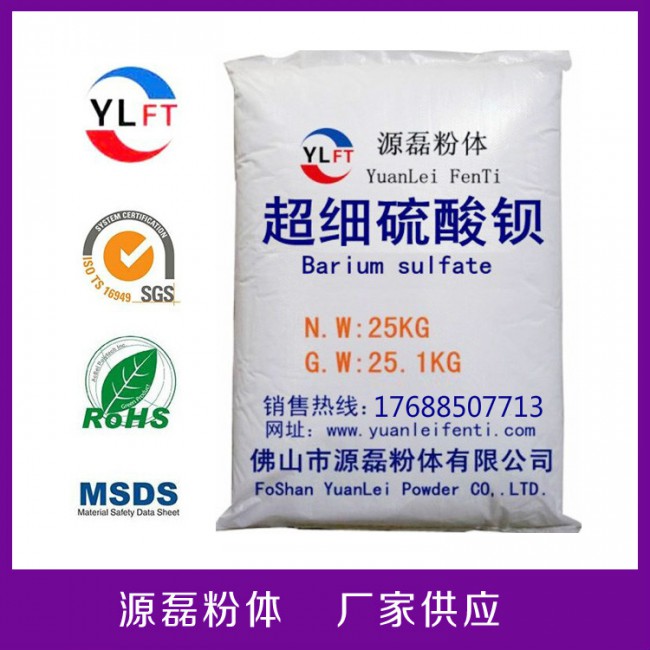 ‘源磊牌’超細硫酸鋇特點;具有化學惰性強,穩定性好,耐酸、耐堿、耐水性,硬度適中,高比重,高白度,能吸收有害射線的環保材料。同時還可提高制品剛度,粘稠度和耐磨。使產品光澤亮麗,穩定性好。能替代部分沉淀硫酸鋇,鈦白粉。活性二氧化硅等價格較高的原材料,降低成本。