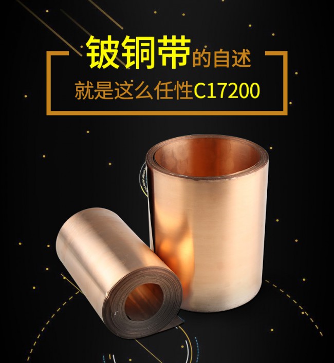c17200鈹銅帶,是進口鈹銅的一種。c17200鈹銅,全系列鈹銅被稱為“有色金屬彈性之王”用于各類要求高強度、高彈性、高硬度、高耐磨性之微電機電刷、開關、繼電器、接插件、溫控器之彈簧片、各類彈簧片,隨著對產品的可靠性、使用壽命的要求越來越高,鈹銅的需求也將會越來越大。
