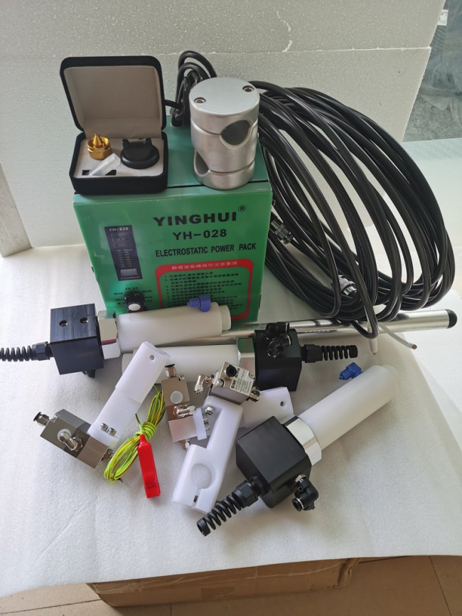 靜電噴槍是目前廣泛使用的液體靜電噴槍,有手動、自動靜電槍區分。靜電槍高壓輸出無極調節,主機設自動跟蹤保護系統,安全性能高,漆膜包邊均勻,有效節省30\%以上涂料,噴槍操作簡單方便。 手動及自動噴槍標準配置:靜電主機壹臺、噴槍壹套(含涂料管、靜電線、空氣管、噴嘴)、氣動隔膜泵浦壹臺。