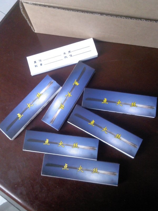 每盒300根,直徑0.12毫米,長度80-100毫米,燃燒熱值50焦/根。