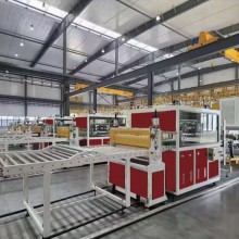 LVT(SPC)新型裝飾地板生產線是由PVC多層復合片材壓成的,安裝方式類似通用的復合地板。片材由壓光機生產。LVT地板在過去幾年里牢牢占據了裝飾地板市場龐大的市場份額,并且呈兩位數持續增長。LVT裝飾地板生產線用于制造透明或不透明pvc片材,產量范圍在1000公斤/小時,透明片材用于抗刮擦表層,不透明白色片材主要用于印刷裝飾,而其他各層被附在高鈣填充基層上進行層壓和裝飾。